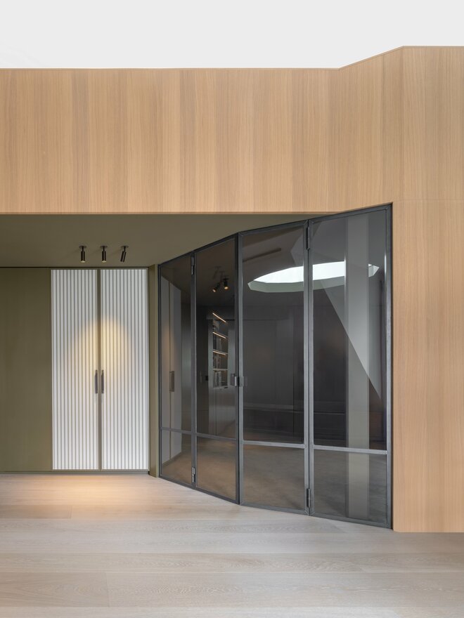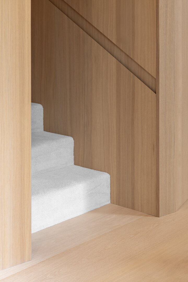 Lichtdurchflutete Räume prägen das Projekt und schaffen eine Atmosphäre von Offenheit und Klarheit. Die sorgfältig ausgewählten Materialien entfalten im Zusammenspiel ihre volle Wirkung – warm, ehrlich und kontrastreich zugleich. Holz, Stein, Metall und textile Oberflächen sind präzise aufeinander abgestimmt und verleihen jedem Bereich eine eigene Identität. Jedes Detail wurde konsequent durchdacht und auf höchstem Niveau ausgeführt. Die Optimierung von Funktion, Ästhetik und Ausführung zeigt sich in der präzisen handwerklichen Umsetzung. Das Ergebnis ist ein Raumkonzept, das von Perfektion im Detail und der Liebe zum Material geprägt ist – reduziert, hochwertig und zeitlos.